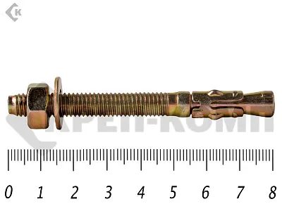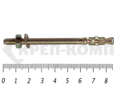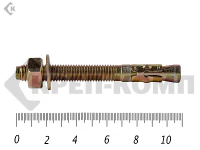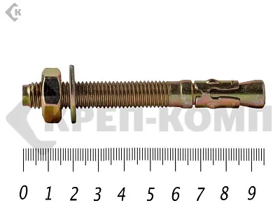 Анкер клиновой КРЕП-КОМП обладает прочностью и выдерживает огромную нагрузку на вырыв. Анкер клиновой предназначен для сквозного монтажа тяжеловесных конструкций. Используют для создания ответственных креплений (шахты лифтов, перила, балки, станки, лестничные конструкции).
