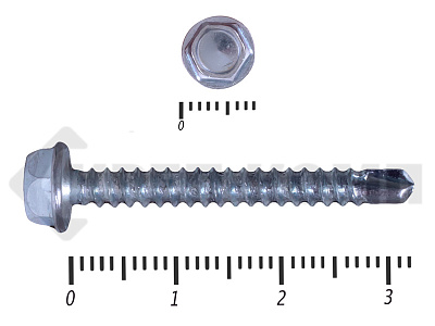 Все кровельные саморезы идут с шестигранными головками под насадки на 8 мм или 10 мм. Такая форма головки позволяет легко закручивать крепёж с помощью шуруповёрта. При этом исключаются перекосы и срыв шлицевых поверхностей шляпки.